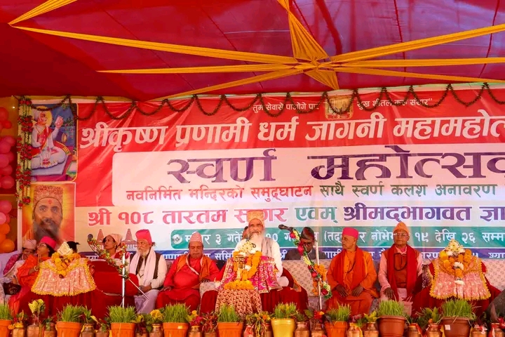 चितवन / श्रीकृष्ण प्रणामी मन्दिर बुढाैली स्थापनाको स्वर्ण वर्ष महोत्सवअन्तर्गत आयोजना गरिएको १०८ श्रीमद् तारतम सागर पाठ पारायण तथा धर्म जागरण महोत्सव अत्यन्तै भव्य, मर्यादित र अध्यात्मिक उल्लासका बीच सफलतापूर्वक सम्पन्न भएको छ।