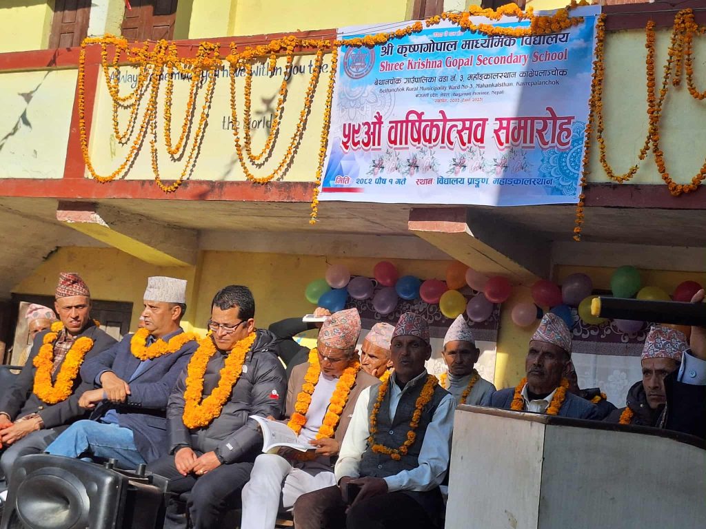 समारोह विद्यालय व्यवस्थापन समितिका अध्यक्ष कुमार सन्जेलको सभापतित्वमा सम्पन्न भएको हो। सांस्कृतिक सत्रमा लोकदोहोरी संघ काभ्रेका अध्यक्ष वाईपी घिमिरे लगायतका कलाकारहरूको प्रस्तुतीले कार्यक्रमलाई थप जीवन्त बनाएको थियो।